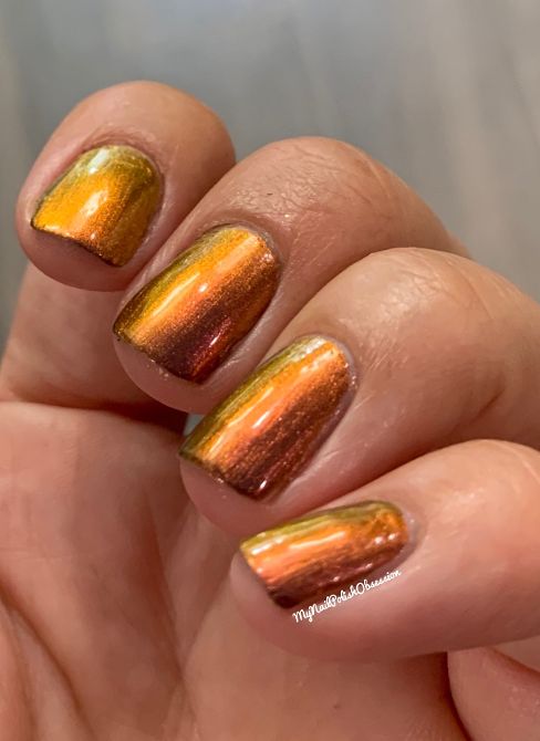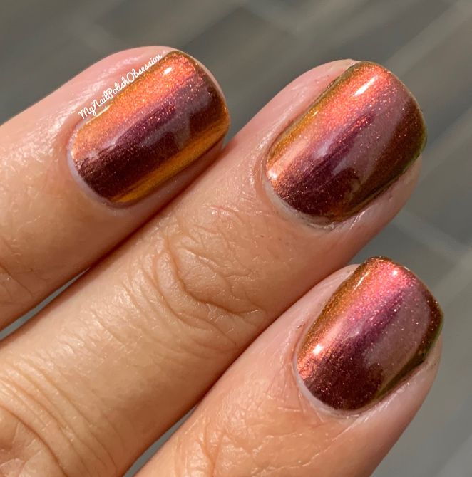 The color shift is far better in person than in the pictures. The polish goes on smooth and stays for quite some time. Its a great color to use when you want a simple polish with a bit of something special :)