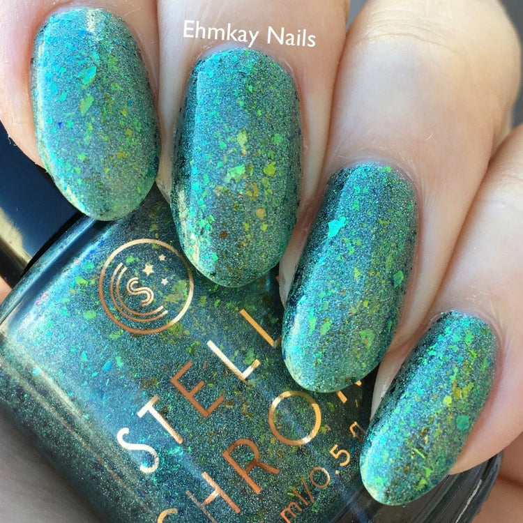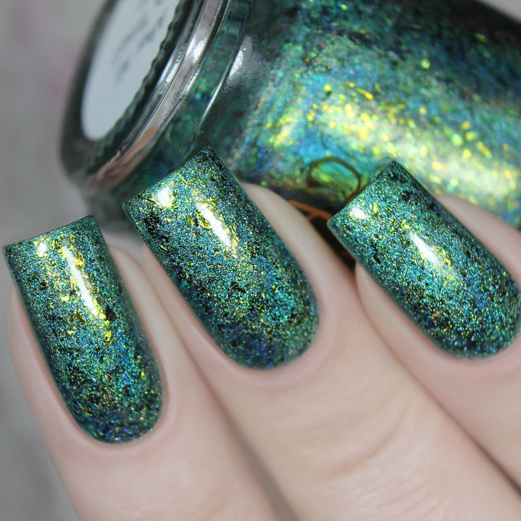 After All This Time - Representing both Snape's Slytherin green and Lily Potter's green eyes, this green linear holo stunner with shifting UCC flakies is as timeless as his feelings for her. Buttery smooth and opaque in two coats.