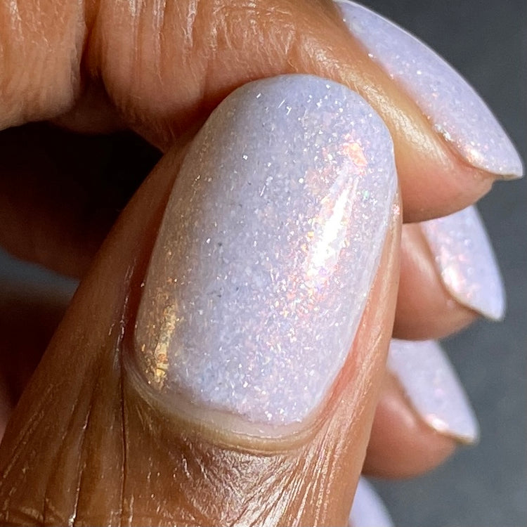 This color reminds me of a gorgeous purpley-pink sky. It is light and airy, and definitely a flirty color I wear when I want to romanticize my life. Love it! Highly recommend it. I add a pastel purple/lavender base sometimes to really make it a little bolder - otherwise it's a gorgeous and delicate shade without it.