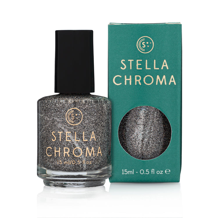 It's a beautiful sparkling gray! Tiny glitters make this polish shine stunningly in any lighting! Love the formula!! And the brush. Stella Chroma is the perfect polish