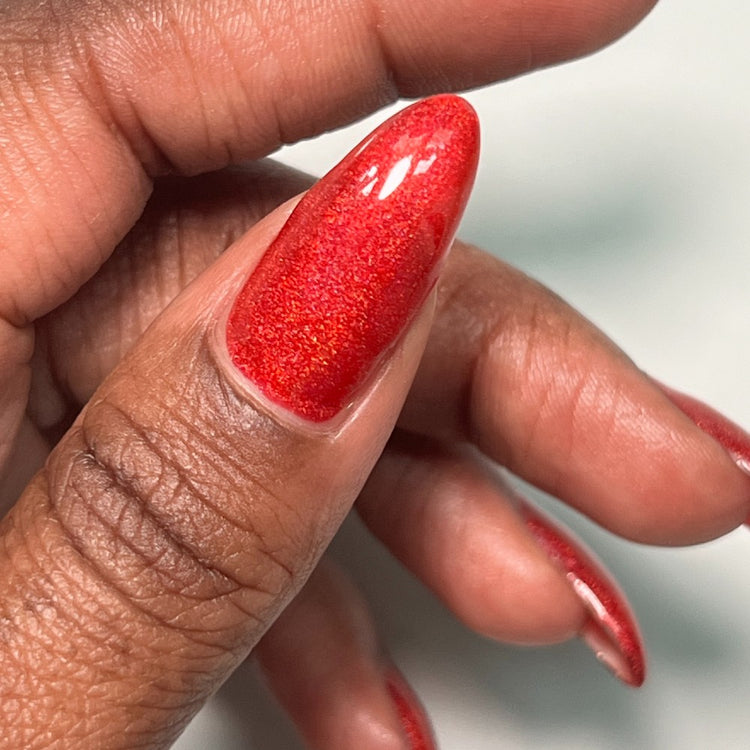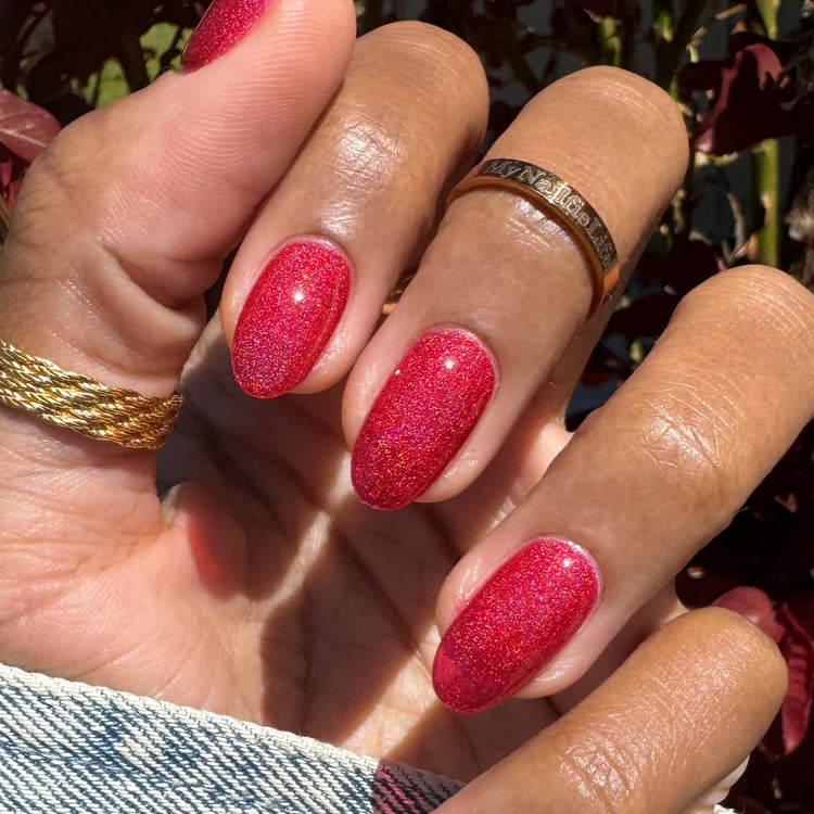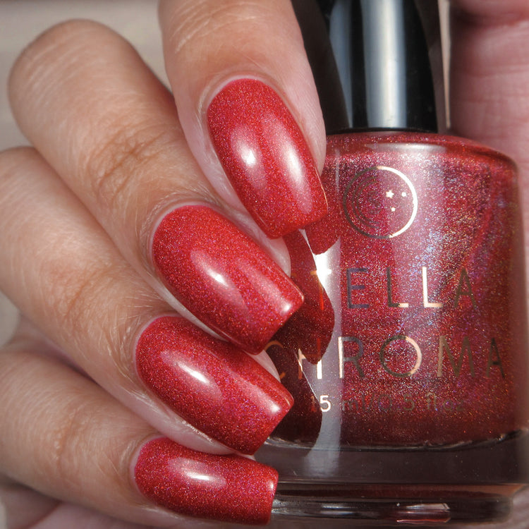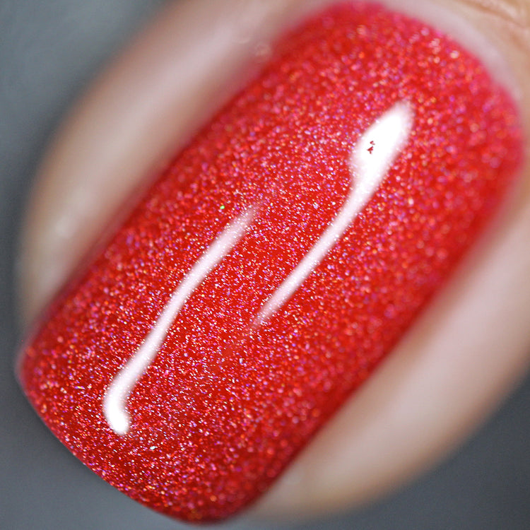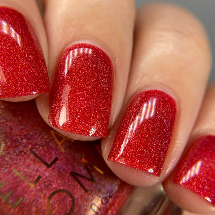 Kept You Like An Oath - A true red stunner full of fine holographic shimmer. Simple and complex all at once. This one is good to go in 2 coats. Inspired by the Taylor Swift song All Too Well. And a PSA from my niece Brayleigh - Always listen to the "Taylor's Version" of Taylor songs. ;)