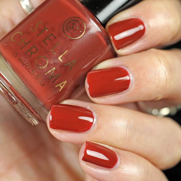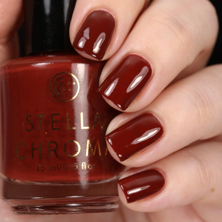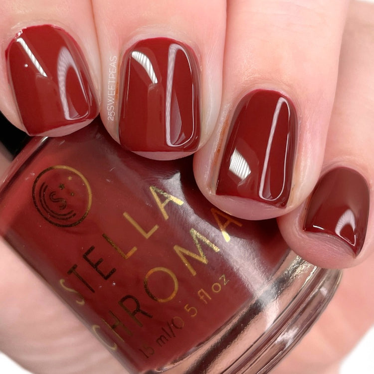 I love this color and the quality of Stella Chroma products! I use in conjunction with SC base and top coats and it can last two weeks. This color is beautiful and perfect for fall. Customer service is top-notch. I received this shade less than 24 hours after ordering! I will continue to use Stella Chroma products and will probably order an extra bottle of this beautiful shade!