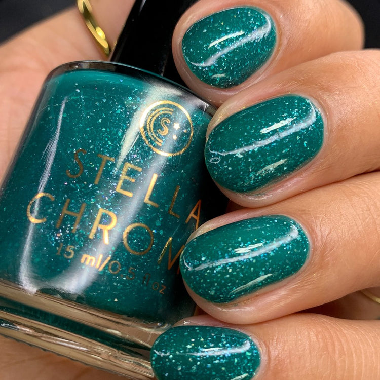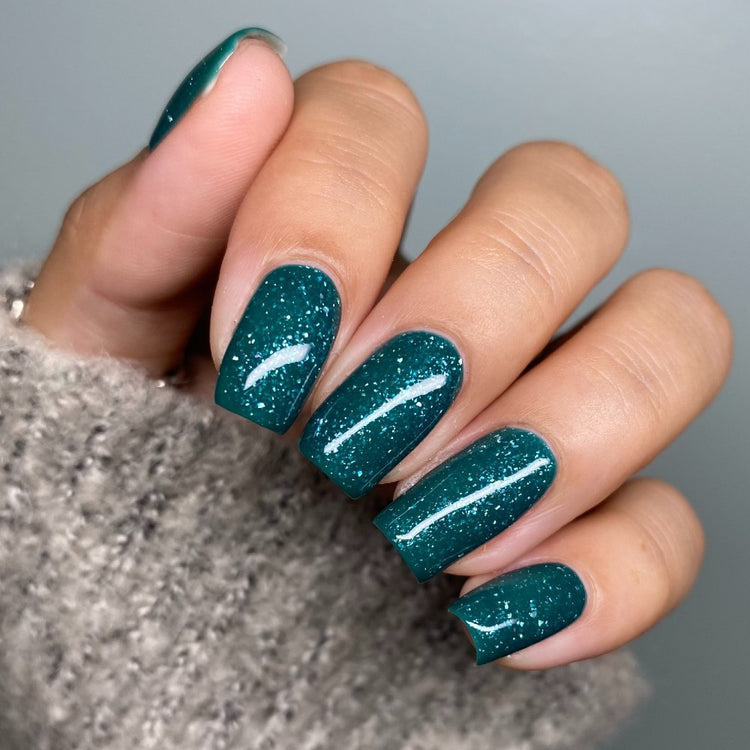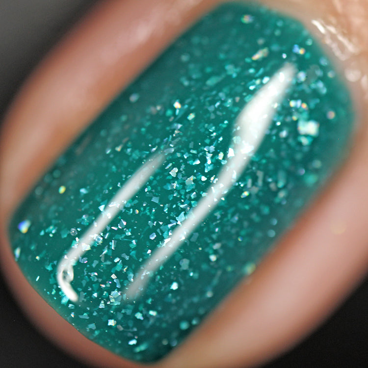 You Have No Idea Buddy - A deep green crelly base with silver holographic flakies and irregular white shimmer. Best in 2-3 coats.