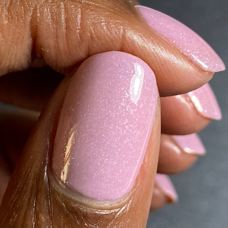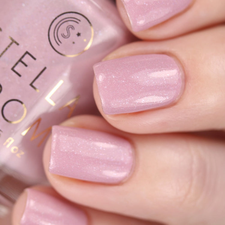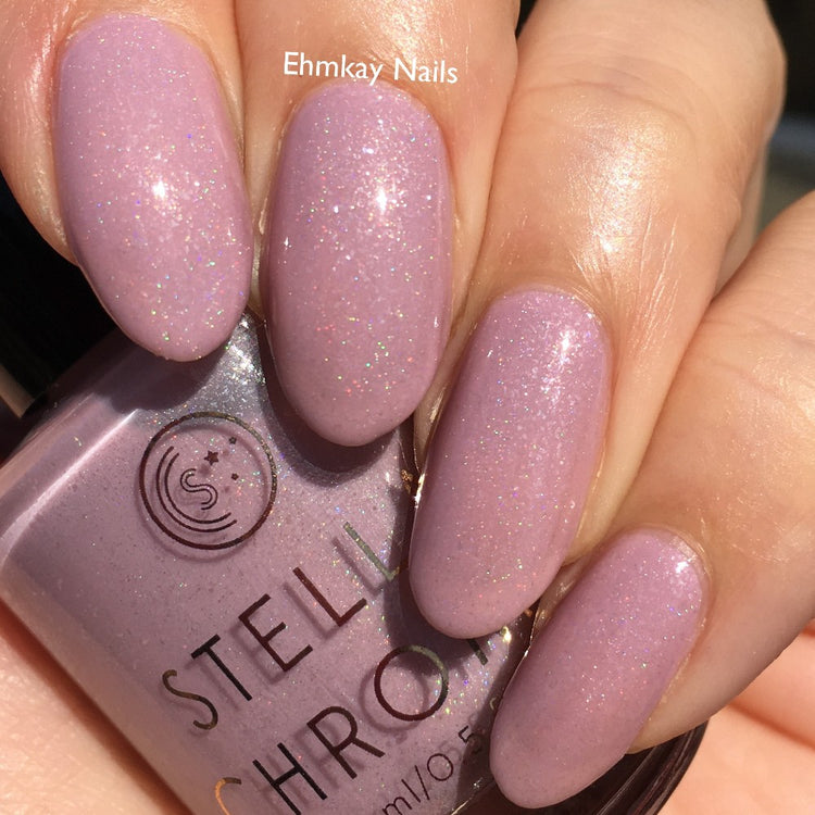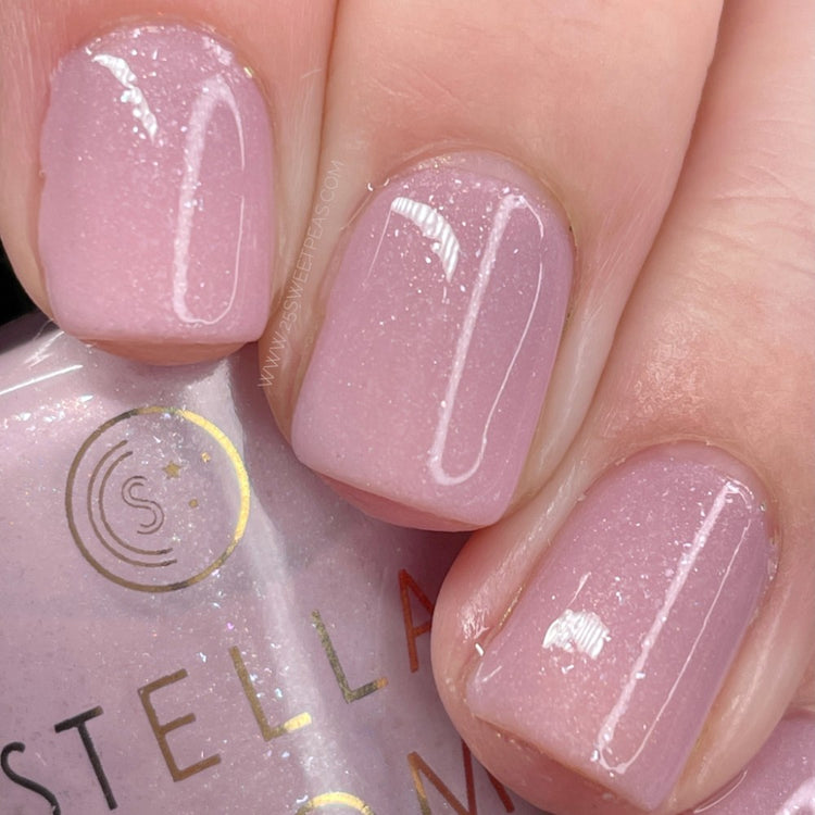 Mammatus Clouds - A soft pink studded with holographic silver sparkle. Inspired by the thick, puffy clouds seen about 15 minutes before a big thunderstorm rolls in.